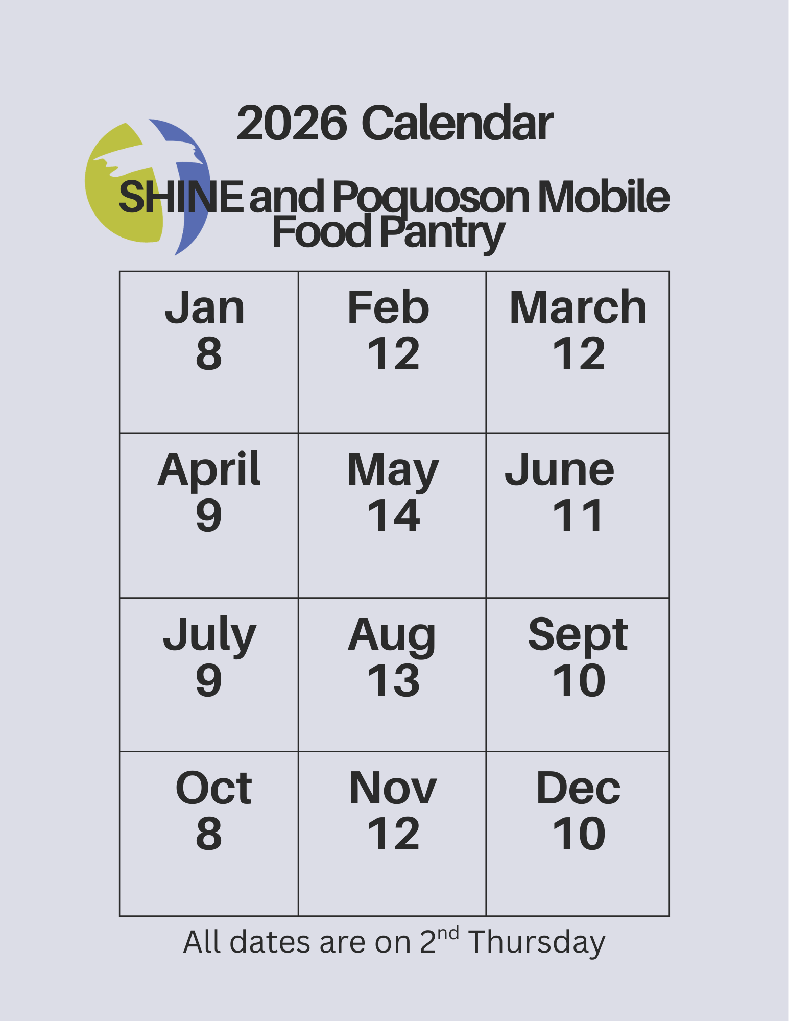 SHINE at Emmaus joined with the Poquoson Mobile Food Pantry in February 2022 to provide cleaning products and hygiene items at the monthly food distributions held on the 2nd Thursday from 10 am until noon. Each month a group of items selected from laundry detergent, dishwashing detergent, paper towels, shampoo, soap, toilet paper, toothpaste, toothbrushes, and similar products is distributed.